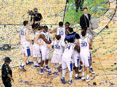 If you live in the state of Kentucky, you are likely vaguely aware that the Cats brought home the college basketball national championship. Matt is thrilled, Amy is vaguely impressed, and the kids just want to see them cutting the nets. Matt's dad got the kids some national championship t-shirts, which they are modeling below. Our kids are slowly beginning to enjoy the whole UK sports thing, and they are definitely Cat fans. (PS - Anyone who feels the urge to mention anything related to the word "vacate" in the comments may kindly not waste their time.)